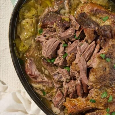 trending_flat Viande Gnocchis cuits au four en une seule poêle avec de l’agneau américain et de la feta