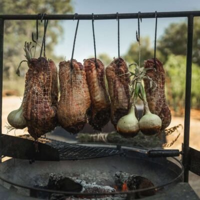trending_flat Viande Bol de légumes de printemps avec des côtelettes de gigot d’agneau américain grillées.