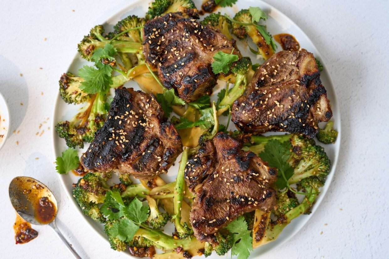 Côtelettes d’Agneau Grillées au Miso avec Brocoli au Sésame