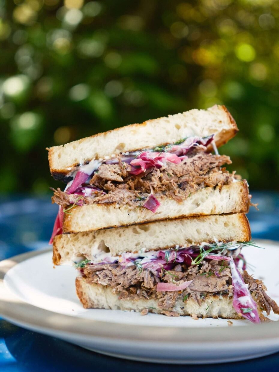 Sandwich de mouton braisé et chou avec mayo à l’aneth