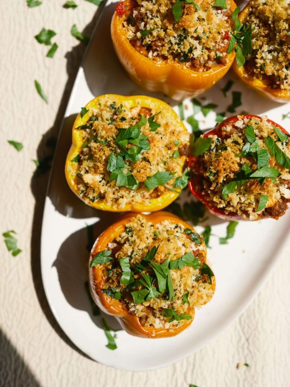 Poivrons Farcis à l'Agneau Découvrez cette recette savoureuse de poivrons farcis à l'agneau, rehaussée d'épices orientales et d'herbes fraîches, parfaite pour un repas réconfortant. Ingrédients pour les poivrons : 6 poivrons (rouges, jaunes ou orange), avec le sommet coupé et les graines enlevées 2 cuillères à soupe d'huile d'olive Une pincée de sel et de poivre Ingrédients pour la farce : 1 petite oignon jaune, haché finement 3 gousses d'ail, émincées 450 g de viande hachée d'agneau américain 1 cuillère à café de cumin moulu 1 cuillère à café de coriandre moulue 1/2 cuillère à café de cannelle 1/4 cuillère à café de flocons de piment rouge écrasés 2 cuillères à café de sel casher 1/2 cuillère à café de poivre noir fraîchement moulu 1 cuillère à soupe de concentré de tomate 1 boîte (410 g) de tomates concassées 3/4 […]
