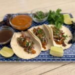 - Pour le tzatziki, mélangez le yaourt, le concombre râpé, l’ail, un peu de sel et un filet d’huile d’olive. Réservez au frais.