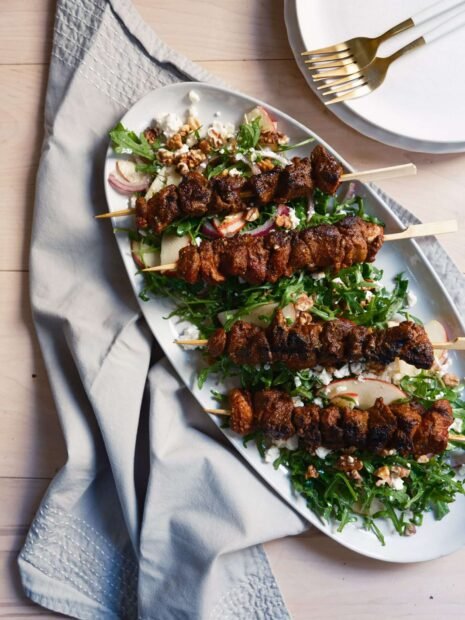 trending_flat Viande Kebabs d’agneau aux épices de citrouille avec salade de pommes et roquette jonas octobre 3, 2025
